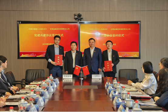 5月24日上午,交银金租党委与工商银行上海市分行党委签署党建共建协议并开展“学习贯彻习近平关于金融工作论述摘编,强化金融服务新质生产力发展质效”主题党建共建活动。