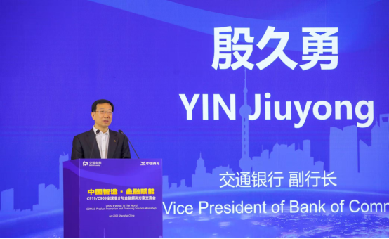 4月24日至25日,由交银金租主办的“中国智造・金融赋能——C919/C909全球推介与金融解决方案交流会”在上海成功举行。交通银行党委委员、副行长殷久勇,交通银行首席专家,交银金租党委书记、董事长徐斌,中国商飞公司909系列总师、工程总师陈勇出席会议并致辞。交银金租党委委员、副总裁、资深专家吴家骏,中国商飞公司营销委副主任、营销中心副总经理岳云峰出席会议。